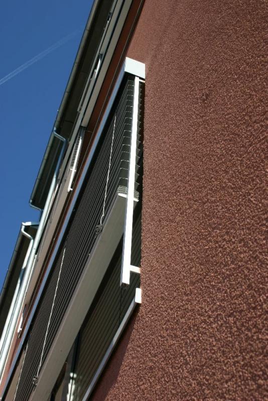 Lamelový nábal aj hriadeľ s motorom sú skryté v dutine špeciálneho stavebného prekladu, takže po dokončení fasády nebude vytiahnutá žalúzia vidieť. Toto riešenie je elegantné a čisté, ale je nutné s ním počítať už pri projektovaní a výstavbe.